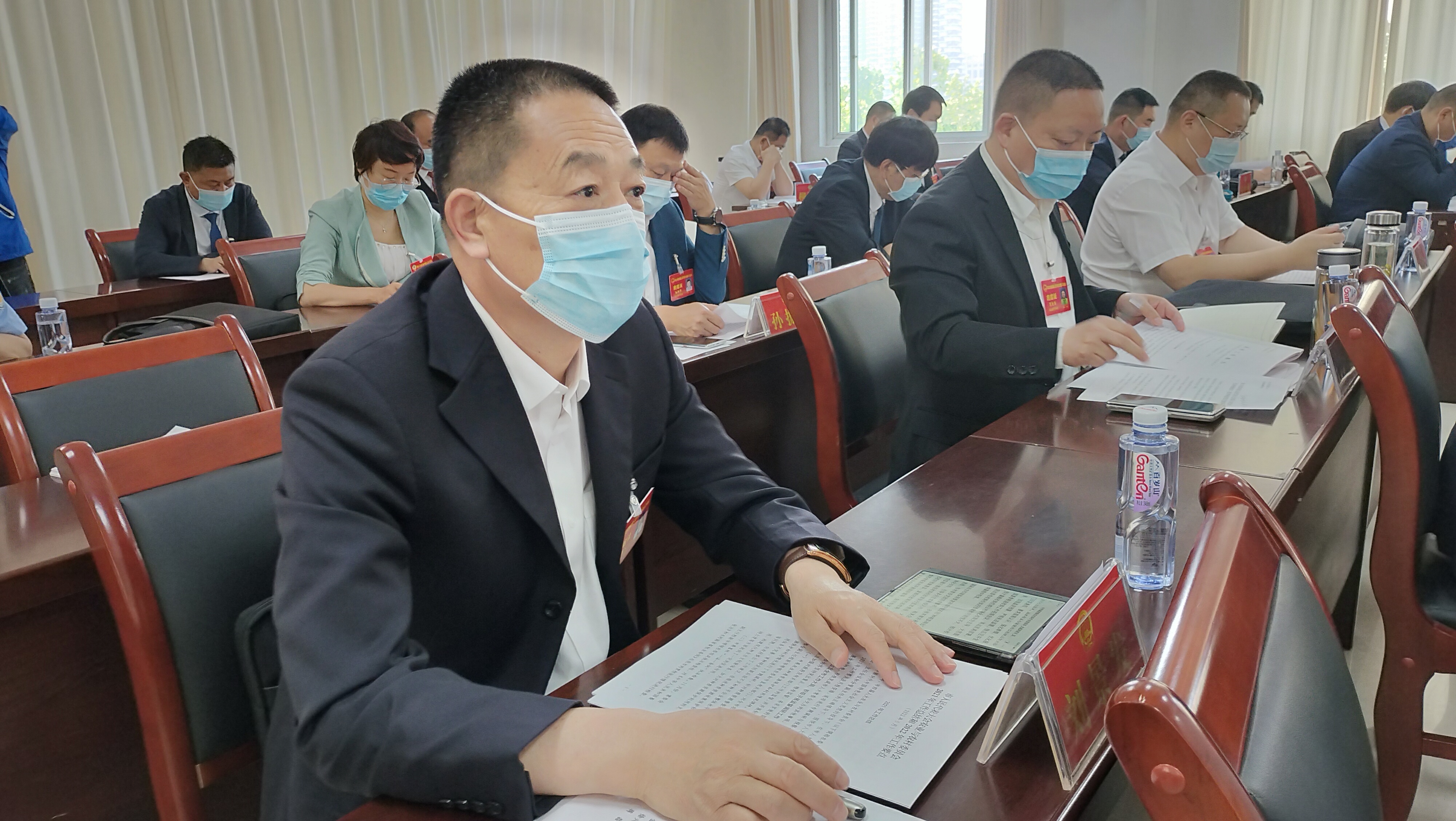 5月21日上午,参加市四届人大八次会议的人大代表和市政协四届七次会议的政协委员聆听人大工作报告。③3