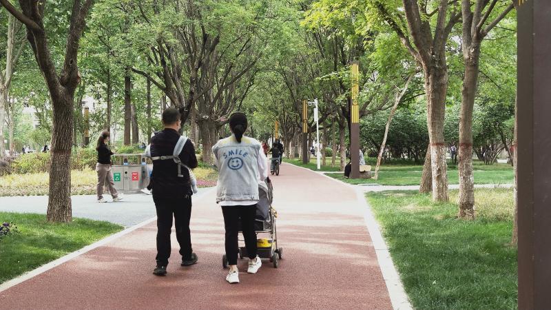 5月21日,周口市人民公园内绿树成荫,繁花盛开,市民或悠闲散步,或小坐聊天,尽享周末愉快时光。 记者 黄佳 摄