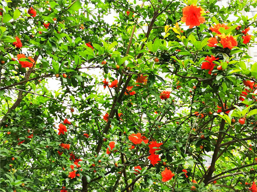 现在,正是石榴花陆续开放的时节。在周口公园和各大市区游园,如火的石榴花正悄然绽放,轻吐出来的花朵像燃烧的火焰,点亮了城市的眼眸。③11