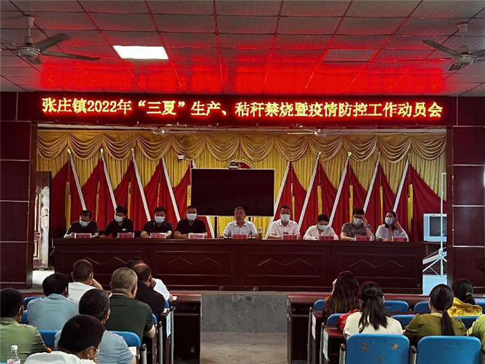 会上,镇人大主席张建新同志宣读了《张庄镇2022年“三夏”农业生产暨秸秆禁烧与综合利用工作实施方案》;镇党委副书记位永齐同志宣读了张庄镇2022年夏季秸秆禁烧工作指挥部人员分工;副镇长智晓华同志安排部署了当前疫情防控工作;各行政村党支部书记向镇党委政府递交了《张庄镇2022年夏季秸秆禁烧、疫情防控工作目标责任书》。
