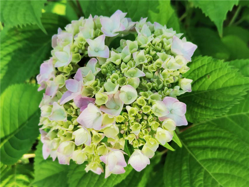 目前,周口公园里的绣球花开得正盛,一团团簇拥在枝头,随着微风摇曳生姿,十分美丽,吸引了不少市民结伴前来赏花。②16