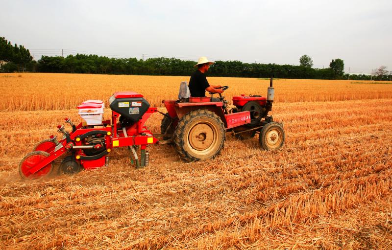 5月31日,扶沟县大李庄乡冯老村村民抓住天气有利时机,做到抢收、播种一体化。