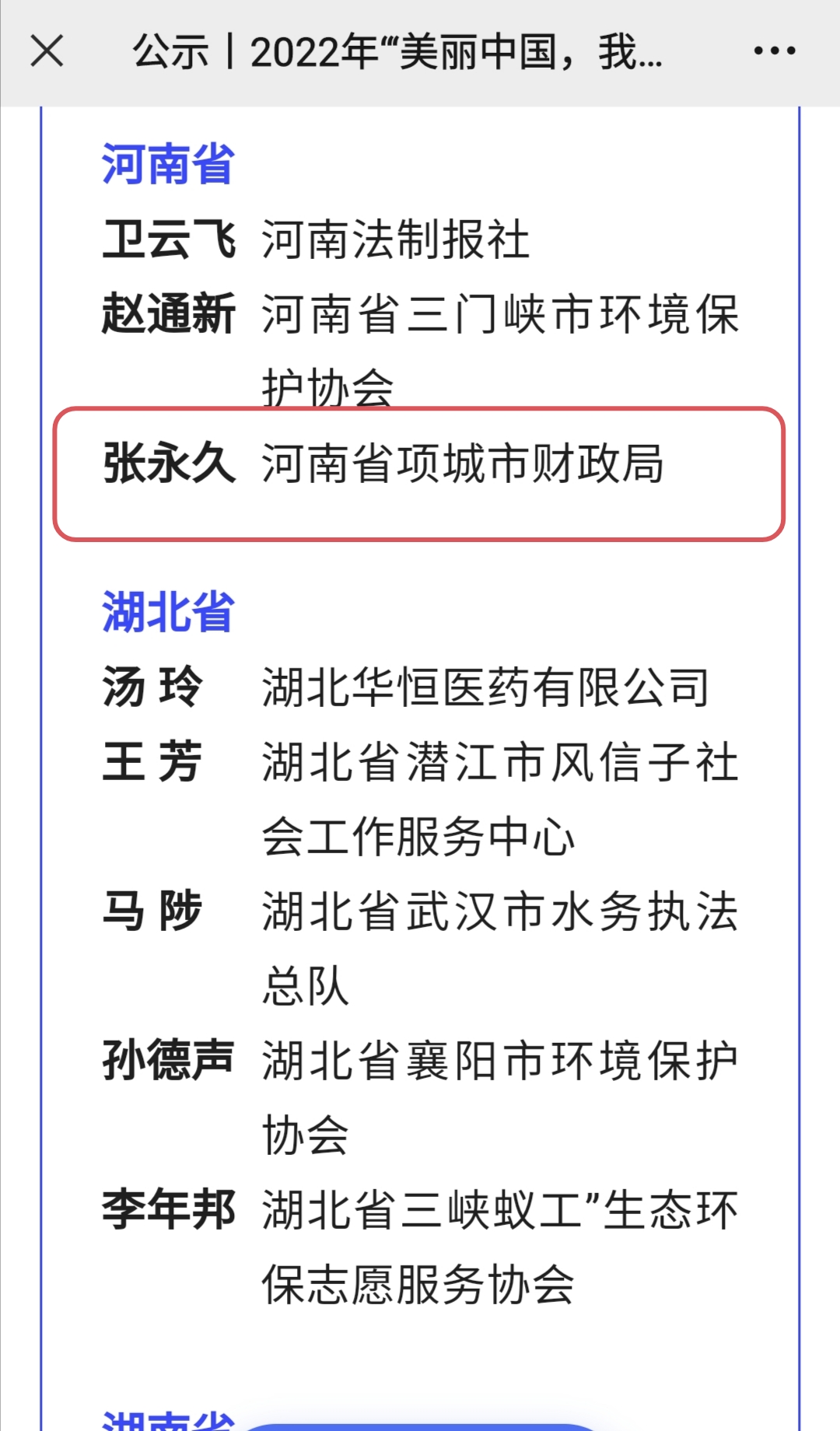 周口唯一!项城张永久入选2022年“全国百名最美生态环境志愿者”