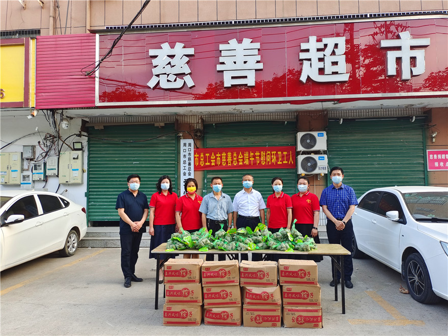 端午到,粽香飘。为了让奋斗在一线的环卫工人度过一个温馨、祥和的节日,6月2日7时,市总工会、市慈善总会开展端午节慰问活动,为工作在一线的环卫工人送去了2400个粽子。
