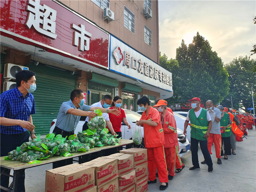 活动现场,工作人员将粽子依次递到环卫工人手中,并向他们致以诚挚的问候和节日的祝福。