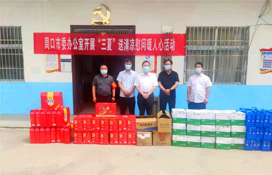 为进一步巩固拓展脱贫攻坚成果,解决帮扶村“三夏”期间群众生产生活实际困难,5月31日上午,周口市委副秘书长、市委办公室主任胡东河,周口市委副秘书长王树强带着牛肉、火腿肠、酸奶、纯净水、消毒液、医用口罩等爱心物资来到项城市高寺镇张老家行政村开展“三夏”送清凉慰问活动。
