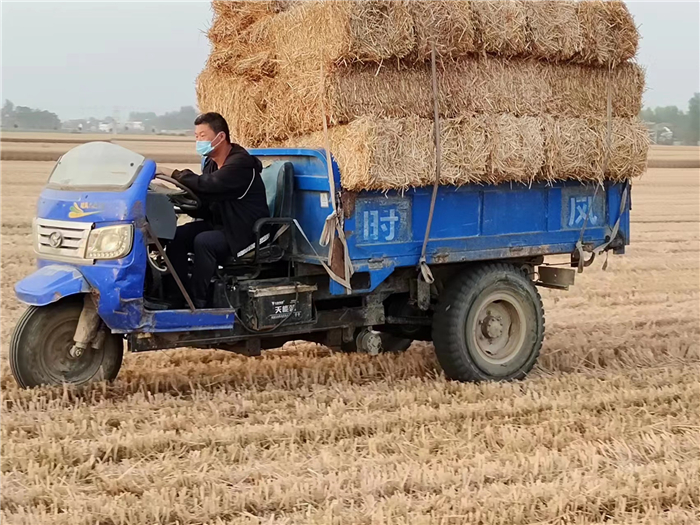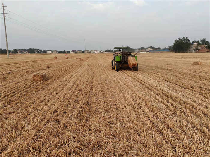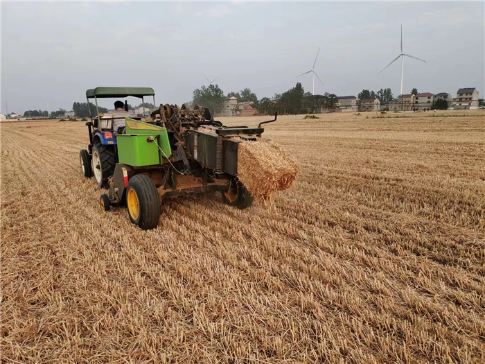 鹿邑县张店镇坚持疏堵结合,以用促禁,切实做好麦秸秆综合利用工作。图为6月2日该县张店镇闫庄行政村群众正在对收获后的麦秸秆进行打捆,之后装车卖给当地的生物发电厂。此举既让麦秸秆变废为宝,又增加了当地群众的收入。