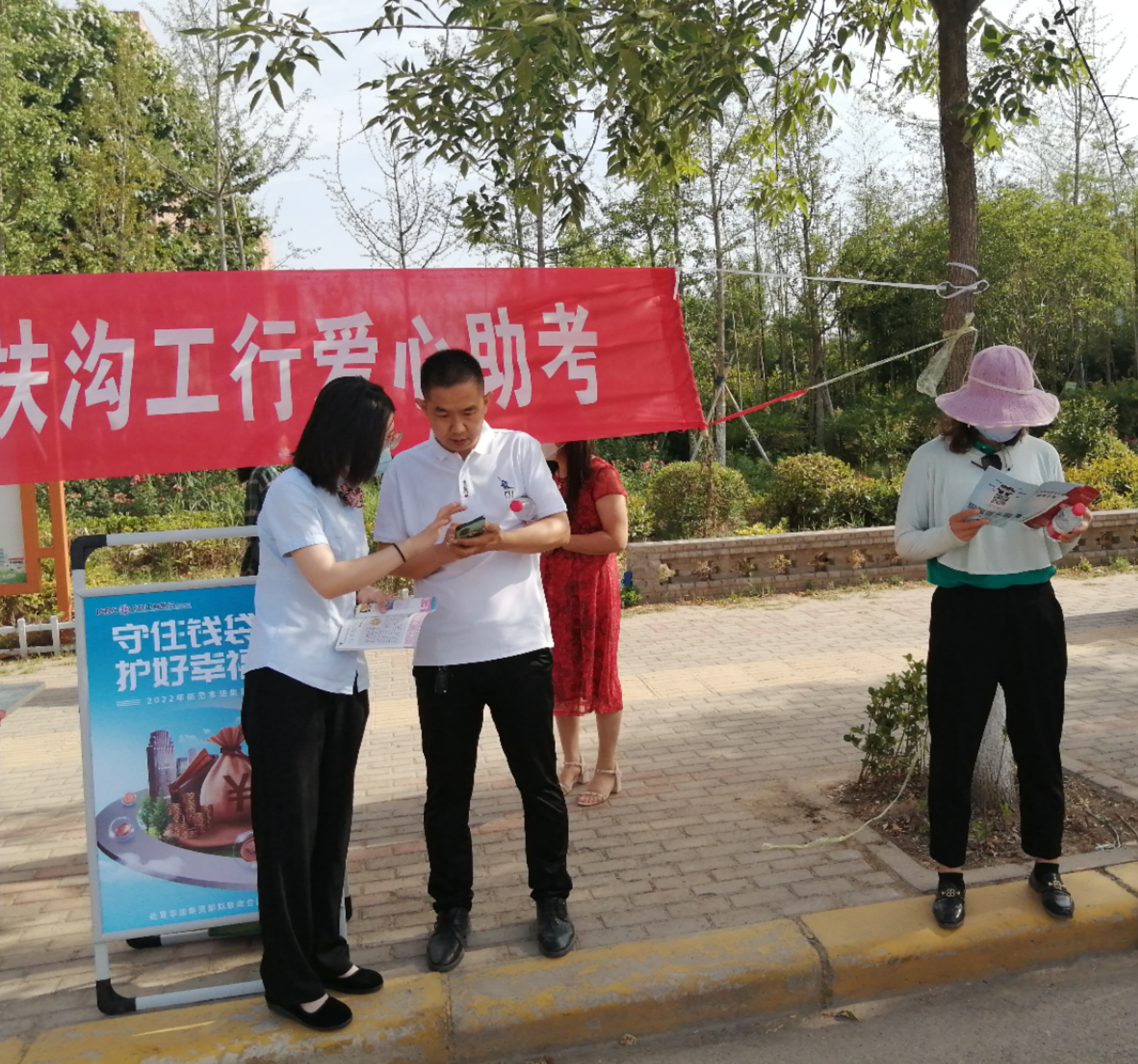 6月7日、8日迎来高考,该行组织所辖机构分赴县市区各考点,设立高考志愿服务站,为考生和家长提供矿泉水、风油精等爱心服务。考场外,工行志愿者利用学子家长等待时间,为家长送上矿泉水,扇子的同时,为家长义务普及金融知识,做好防范校园贷欺诈、防范电信欺诈、保护个人征信义务宣传,现场解答家长所提银行业务问题,有效提升金融消费者自身权益保护意识,以实际行动助力高考,受到学生和家长的高度赞扬。