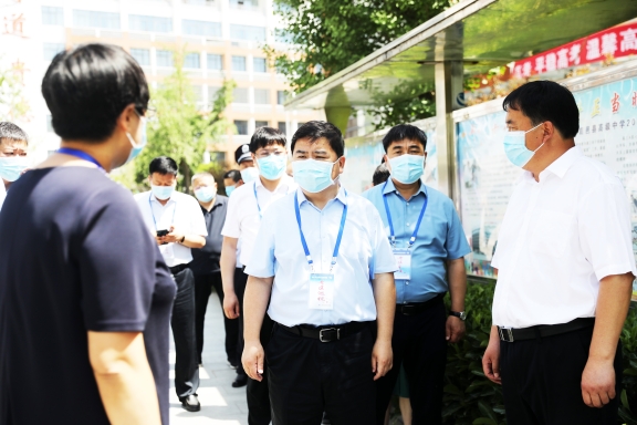 李刚一行实地查看考生入场测温通道、考场考点实时监控视频、备用考场设置等方面的情况,听取相关负责人落实试卷保密安全、疫情防控、考务组织等工作汇报,询问近年来全县高考考生人数、本科上线率。