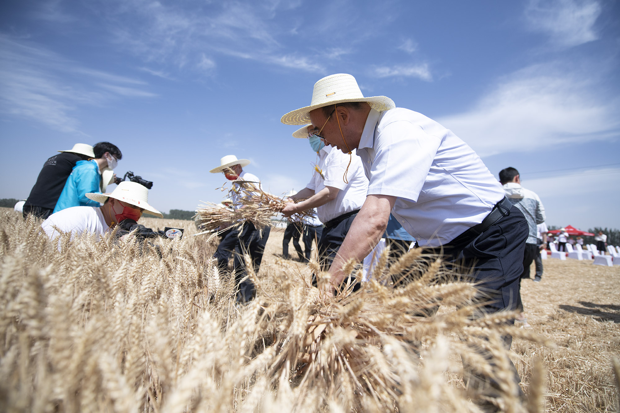 贵州、河南参会领导、嘉宾在小麦基地挥镰体验丰收的喜悦