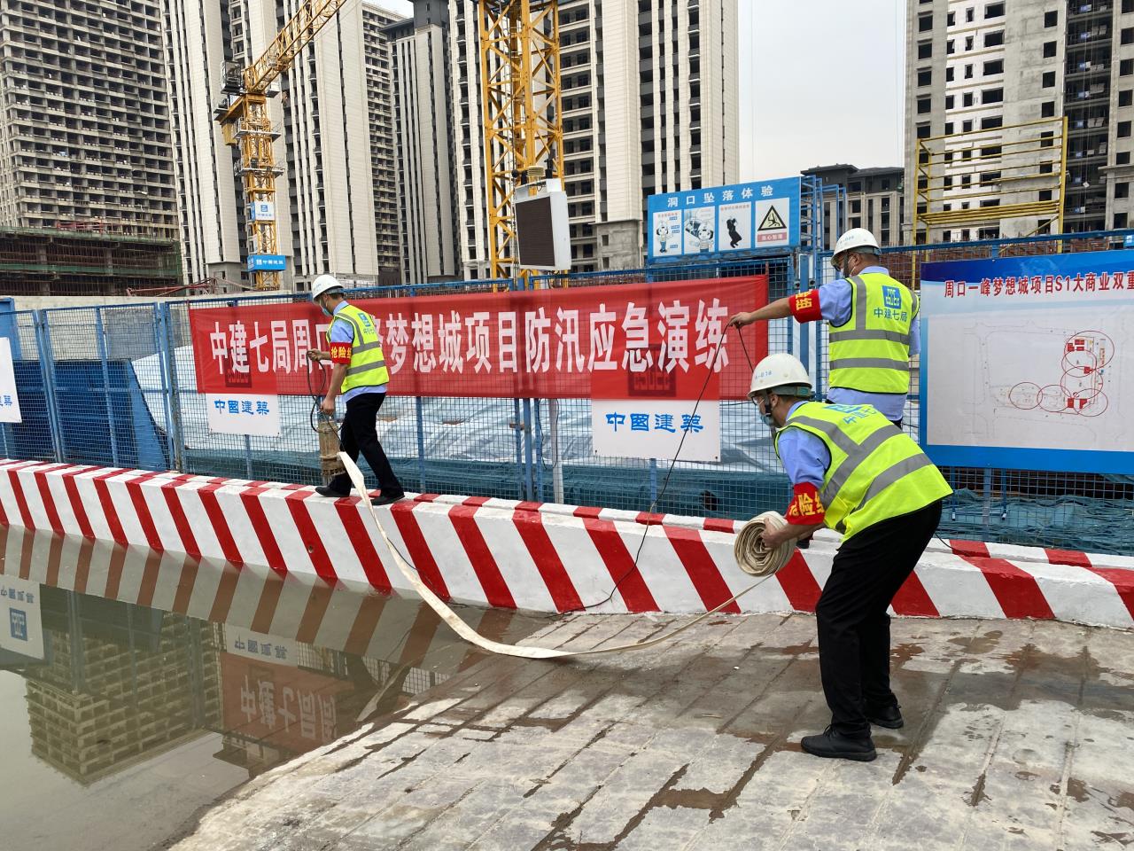骄阳似火!6月13日上午,川汇区住建局在中建七局一峰梦想城商业地块项目施工现场,举办全区住建领域安全生产月启动仪式暨防汛应急演练观摩会,为我市即将到来的汛期进行抢险大练兵。
