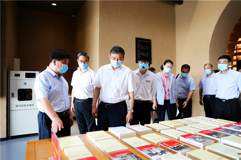 鹿邑县图书馆位于老子研究院内,于2022年3月17日建成开馆,设馆藏文献52000余册,可同时接待读者1400多人次。调研中,王小平指出,该图书馆藏书丰富、环境优雅、服务一流,对推动县域公共文化服务体系建设、促进公共文化服务高质量发展、打造老子元典文化旅游高地起到积极作用。