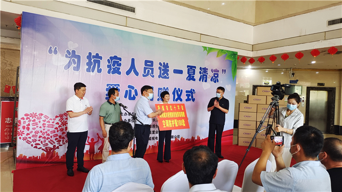 酷暑无情人有情,汇聚爱心送清凉。6月21日上午,项城市红十字会举行“为抗疫人员送一夏清凉”爱心捐赠仪式,一次性向项城市疫情防控指挥部捐赠180套便携式空调防护服,助力解决医护人员高温作业问题,全力支持抗疫工作。