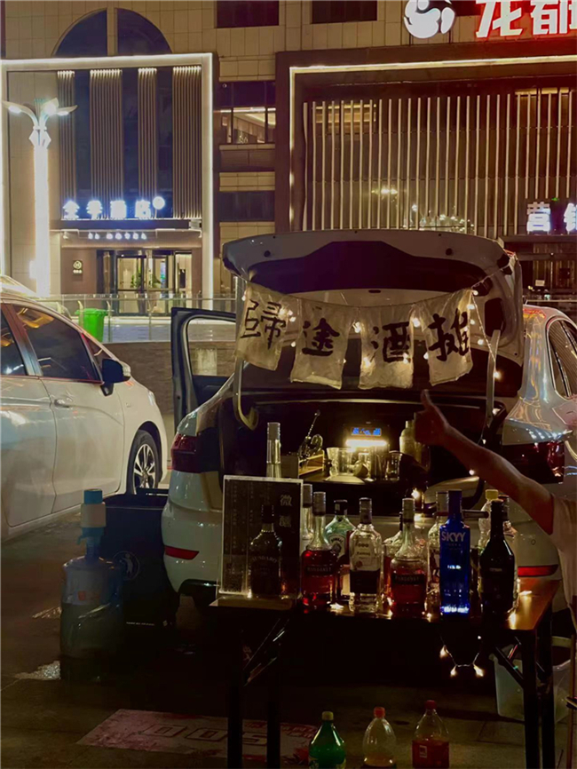 果然,记者一路逛下来,发现“抽空摆个摊 卖啥看心情”“贩卖人间美好”“一对老朋友 两杯好啤酒”“泡面加蛋 霉运滚蛋”等等这些招牌标语十分亮眼,小小的后备箱,被巧手车主布置得流光溢彩。重要的是,比起入室店铺的价格,这里基本上能便宜一半,一杯调制好的鸡尾酒也不过十元,抿上一口,微醺中眯眼看着城市的夜景,流光溢彩、如梦似幻。