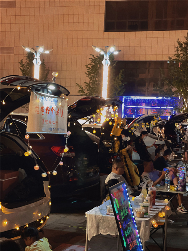 挂上小铺名字,把灯、标语装饰上,后备箱集市成为年轻人自主创业的首选方式。“开着小车来摆摊,既方便又省了租金,一天赚个几百块,我的油钱都有了。”“晚上也没什么事,开着车兜风不如打开后备箱卖货。”“朋友来家吃饭,不如一起来后备箱喝酒呀!”