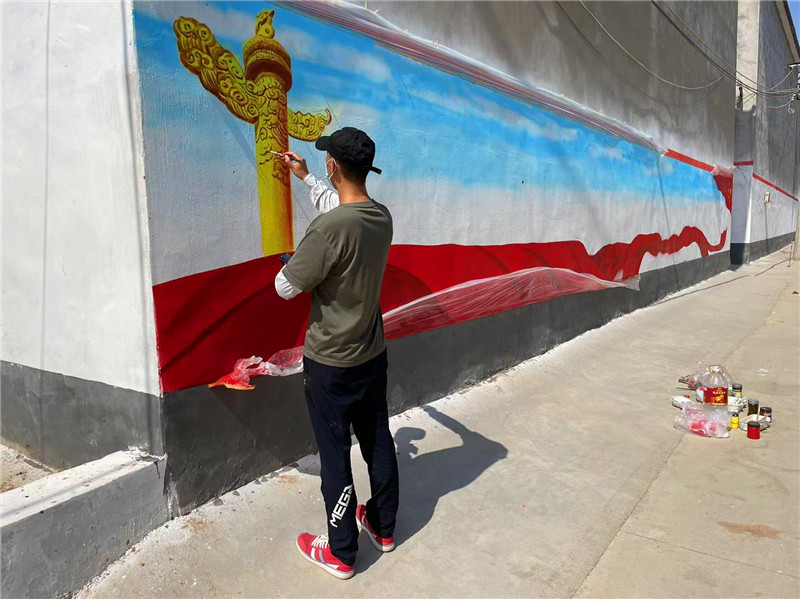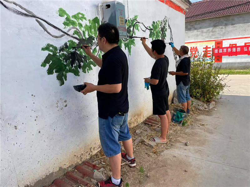 近日,鹿邑县文联和县美术家协会组织文艺志愿者顶烈日、冒酷暑,走进该县贾滩镇槐树李村、凌堂村,开展“丹青绘田园-墙绘新农村——美术助力乡村文化振兴”墙画绘制公益活动。