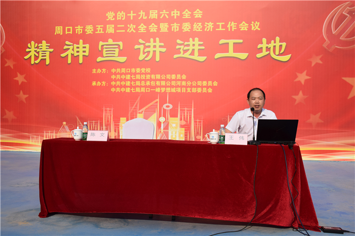 为贯彻落实党的十九届六中全会精神、传达学习周口市委五届二次全会暨市委经济工作会议精神,6月24日,中建七局投资公司、中共周口市委党校联合主办,总承包公司河南分公司承办组织开展的“党的十九届六中全会、周口市委五届二次全会暨市委经济工作会议”会议精神宣讲“进工地”活动举行。