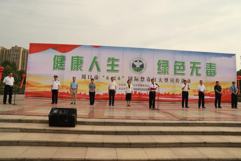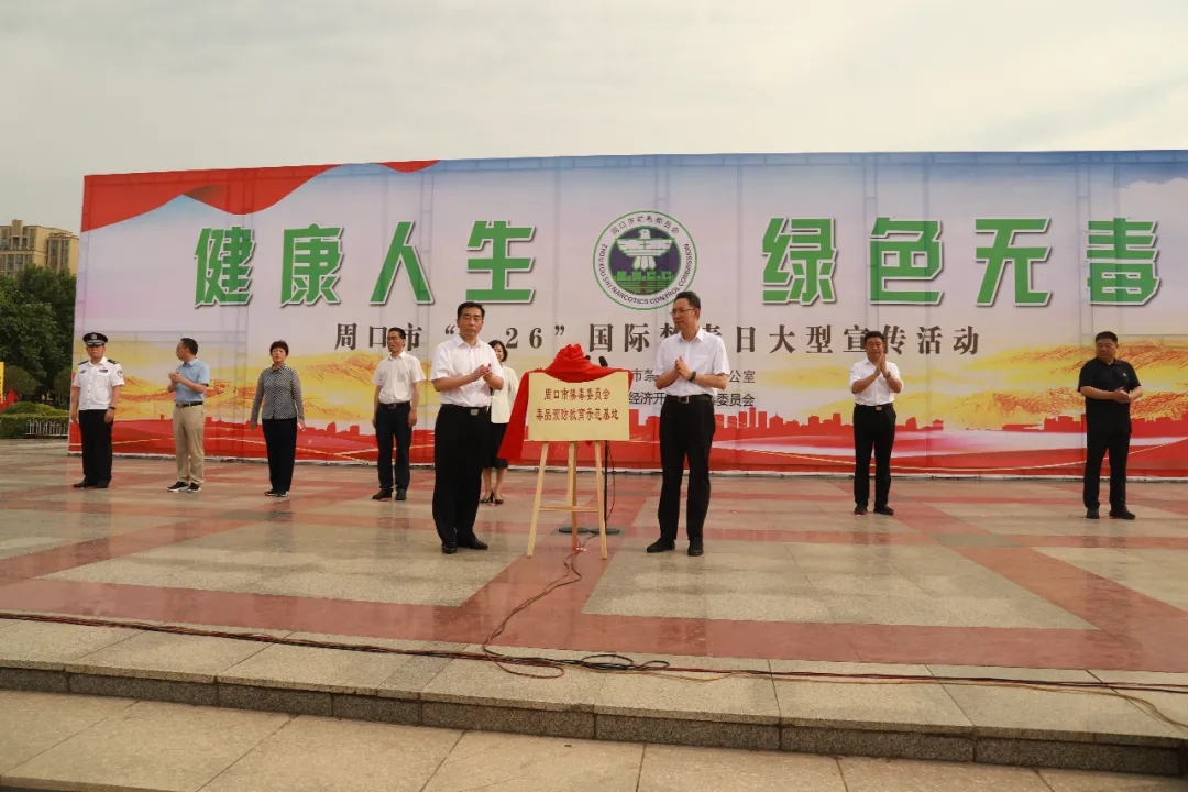 6月26日,由周口市禁毒委员会办公室主办、开发区承办的“6·26”国际禁毒日大型宣传活动在开发区人民广场举行。副市长、市禁毒委主任、市公安局党委书记、局长张元明出席活动并讲话。开发区领导王文峰、赵愚参加活动,张元明与王文峰共同为全市毒品预防教育示范基地揭牌。全市禁毒委全体成员单位、公安民警、禁毒志愿者和社会各界代表近千余人参加宣传活动。