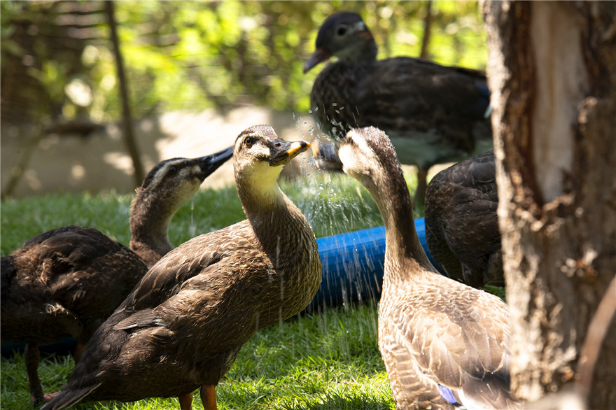 动物避暑各有招:老虎河马泡水澡 丹顶鹤树荫享清凉