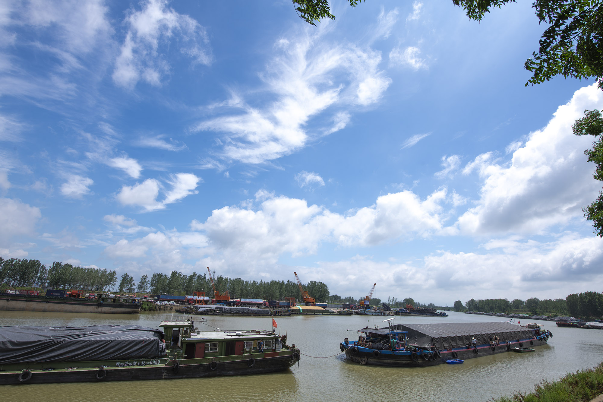 7月6日上午,位于武盛大道跨沙颍河大桥东侧的市城乡一体化示范区码头内,车来船往,格外繁忙。记者看到港口内工作人员将小麦等大宗货物卸车装船,准备通过沙颍河水运外运,同时,港口边沙颍河航道聚集了几十艘货船,或装满麦子,或装满煤炭,货船载货量达千吨,即将开拔。周口作为河南省通江达海的“桥头堡”,近年随着沙颍河航线增多,货运越发繁忙,特别是今年小麦大丰收,眼下正是小麦收购外运的繁忙季节,沙颍河航道成为我市乃至河南小麦外运的重要水运通道。