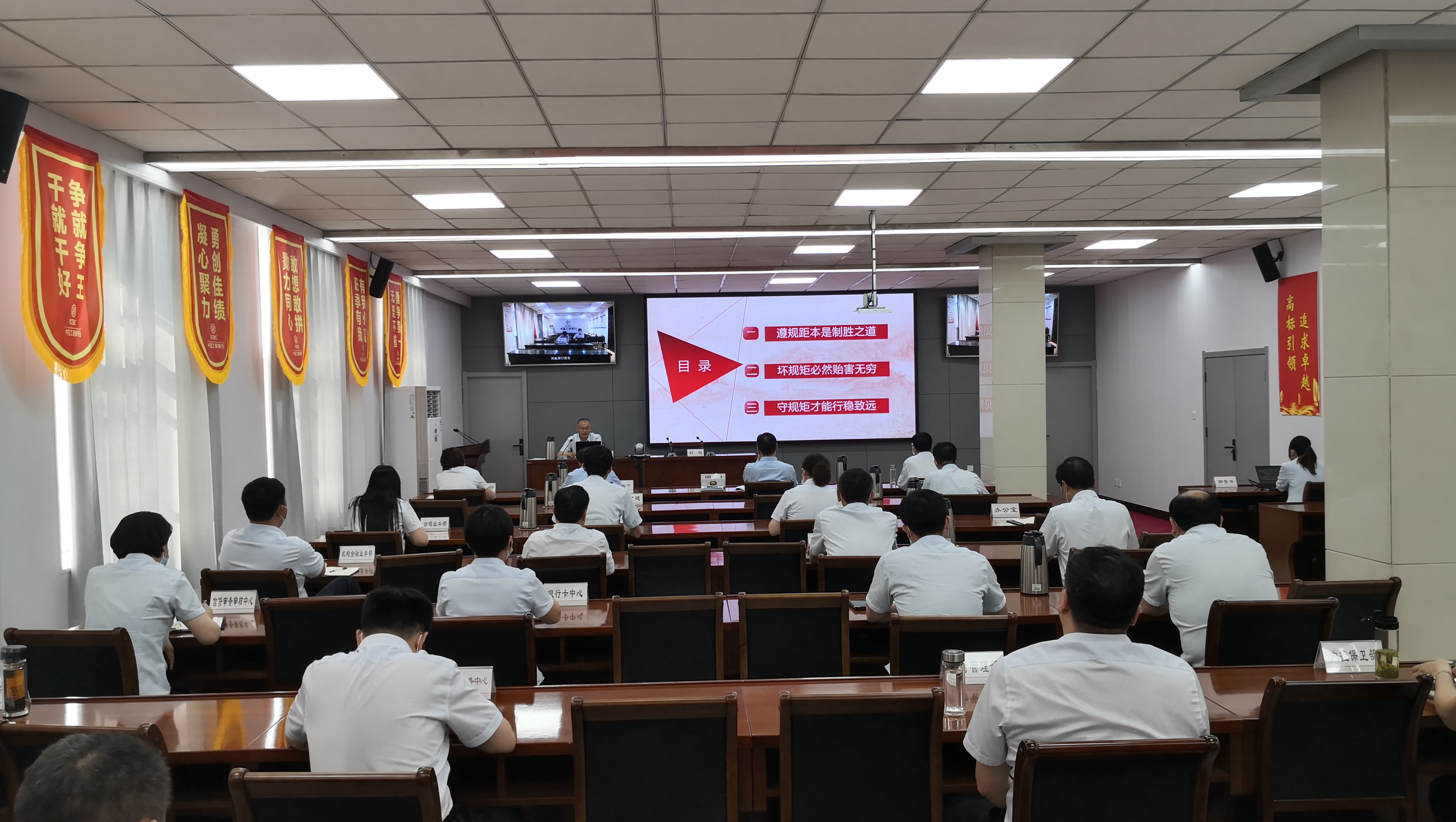 受邀人士以《讲规矩 守纪律》为题,从“遵规矩本是制胜之道”“坏规矩必然贻害无穷”“守规矩才能行稳致远”三个方面详细论述了守纪律、讲规矩的重要内涵,明确守纪律讲规矩是对党员干部党性的重要考验,是对党员干部对党忠诚度的重要检验。并引经据典,结合当前金融反腐形势,列举具体案例,进一步阐述坚定理想信念,讲政治、守纪律、讲规矩,遵法纪、知敬畏、守底线的内涵和重要意义,引导教育全行党员干部增强政治定力,牢固树立纪律和规矩意识,在守纪律讲规矩上作表率,要敬畏人民、敬畏组织、敬畏法纪,做到公正用权、依法用权、为民用权、廉洁用权,永葆共产党人拒腐蚀、永不沾的政治本色,自觉抵制不良风气。