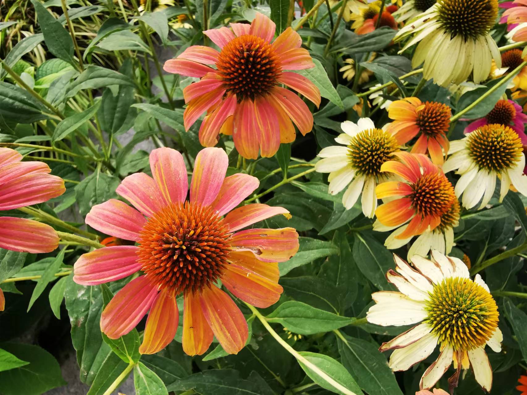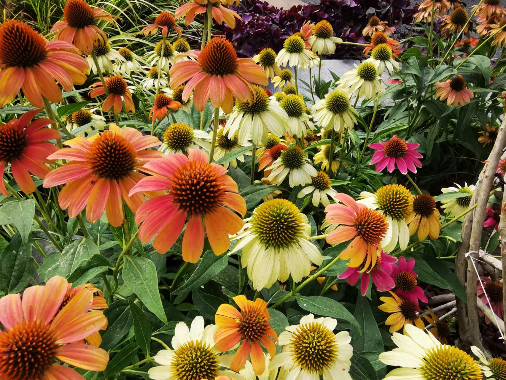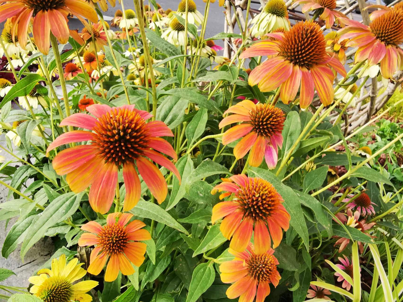 现在,在滨河公园和七一路两边绿化带里,松果菊正值盛放期。松果菊每年夏季开花,花期很长,花朵较大,而且色泽鲜艳,远远望去,一丛丛的鲜艳花朵娇艳盛开,极富浪漫和意境。