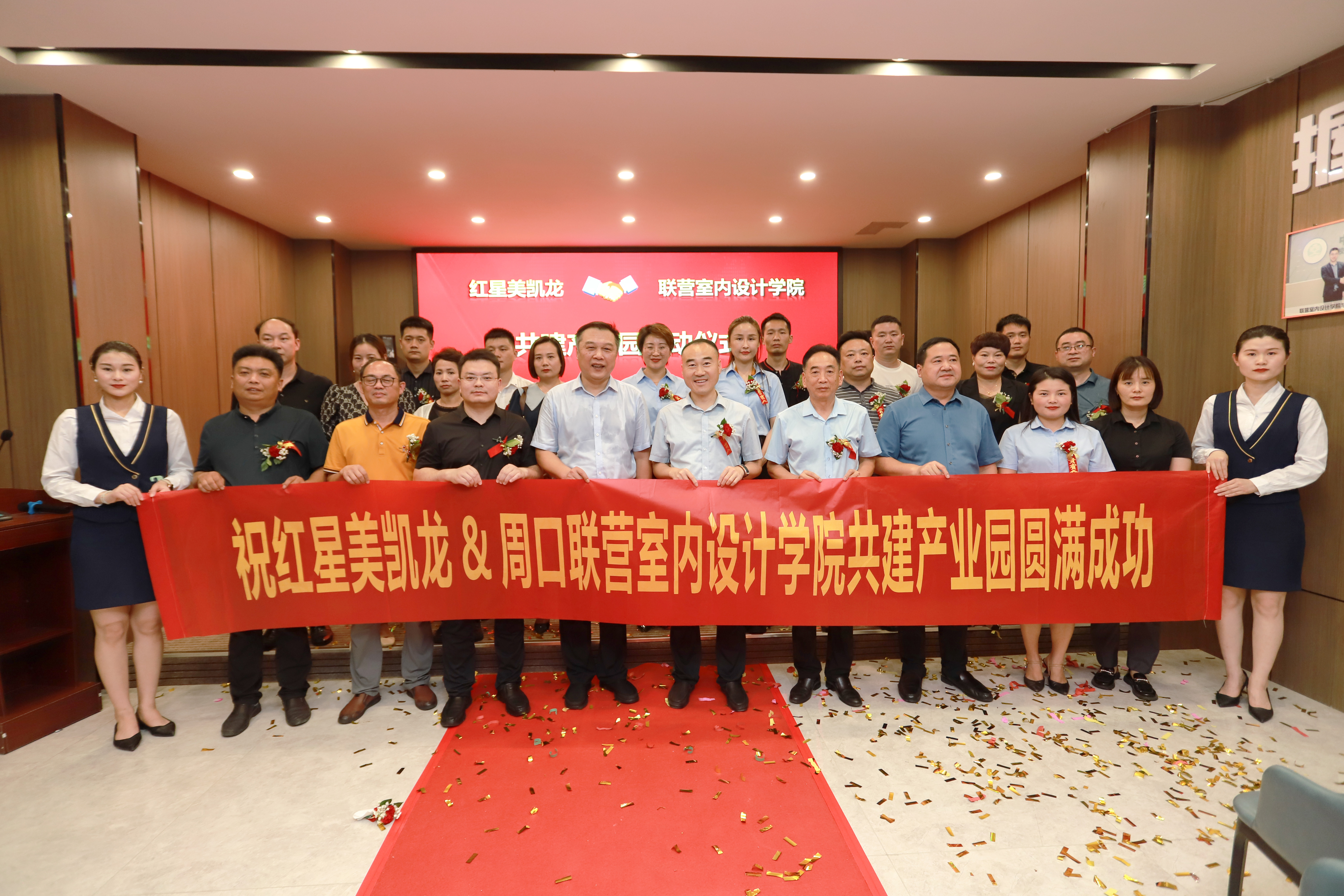 为响应市委、市政府建设职业教育创新发展高地的号召,充分发挥学校与企业的优势,7月11日下午,“红星美凯龙与周口联营室内设计学院共建产业园”启动仪式在联营室内设计学院大厅隆重举行。市人社局常务副局长杜洪凯,周口交通技师学院理事长侯联营、校长侯营坡、党支部书记徐凯、副校长陈红梅、联营室内设计学院院长李静、校企处副处长杨楠,红星美凯龙总经理周伟和入驻该院的十五家公司经理参加了启动仪式。