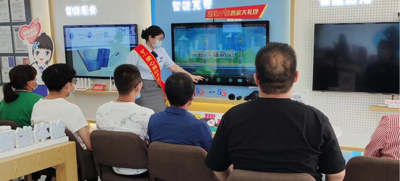 炎炎夏日,为了让户外工作者有休息歇脚的地方,周口电信市区营业厅针对“晴天一身灰,雨天一身泥”的环卫工人开展专项活动。爱心大使邀请厅店附近的环卫工人到店,介绍爱心翼站服务内容,告诉他们随时可以到店里休息、充电、喝水。手把手教他们如何使用智能手机查找健康码、如何线上支付,以及在日常生活中如何识别诈骗信息和电话等 ,最后还为他们送去矿泉水、风油精等物品做好防暑降温。环卫工人李阿姨高兴地说:“以前中午都是坐在路边休息,吃饭也是早上从家里带的,凑合吃两口,现在电信营业厅里有沙发、有空调、有热水,还能把饭加热,这些小姑娘可热情了。”