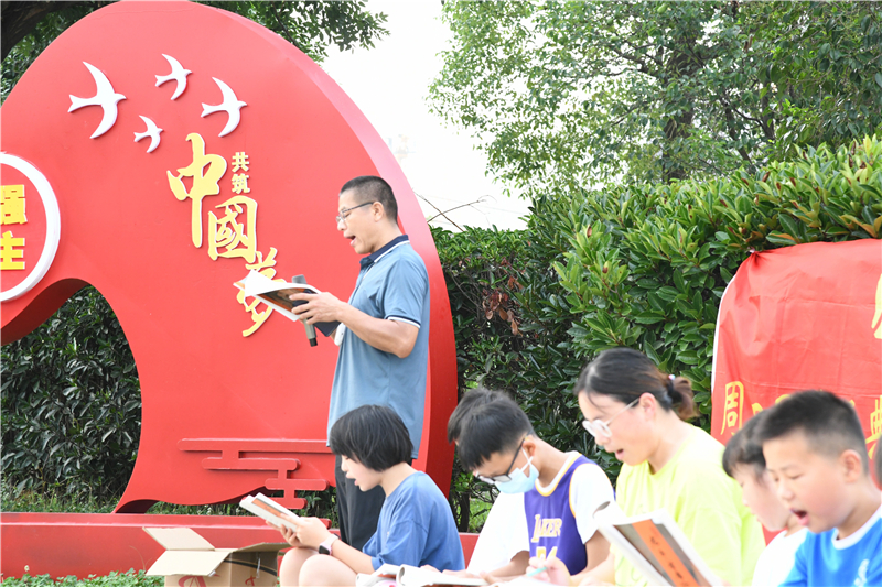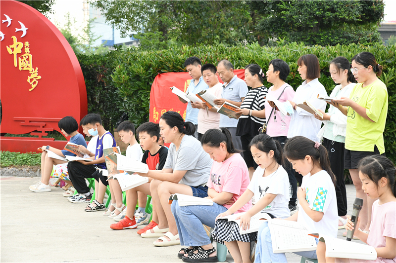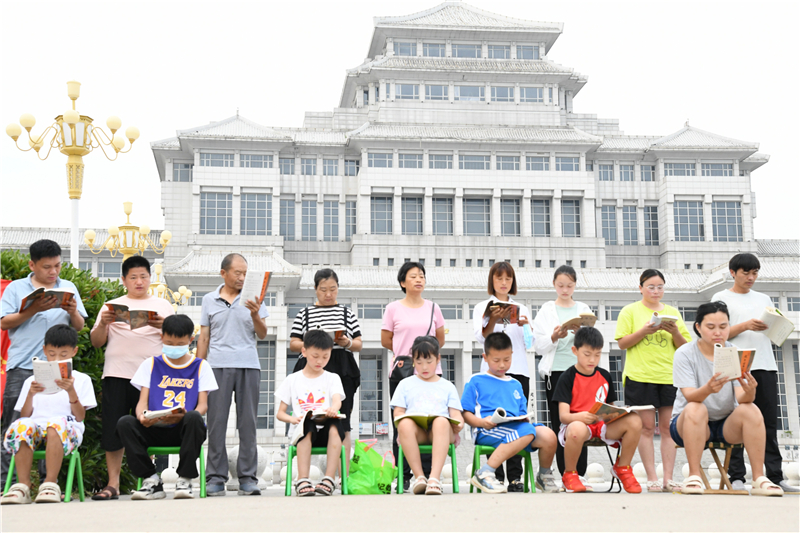 7月16日清晨,由周口国学经典公益读书会组织的“晨读国学 品味书香暑假”读书活动,在市文化艺术中心广场举行,来自附近社区的18个孩子和家长一块儿跟随读书会的老师诵读《道德经》,受到家长和孩子们的欢迎。读书会的张蕊老师介绍,这次暑假公益读书活动共持续40天,晨读场地选在市文化艺术中心,让孩子们在充满文化艺术气息的场所感受文化周口氛围,同时还能让孩子们在假期里养成早起早睡、晨起读书的好习惯,读书活动还邀请了孩子的家长伴读,共同品味经典,感受国学魅力。通过晨读国学经典活动,让孩子和家长多交流沟通,了解孩子们成长的同时,又能营造书香家庭氛围。③6