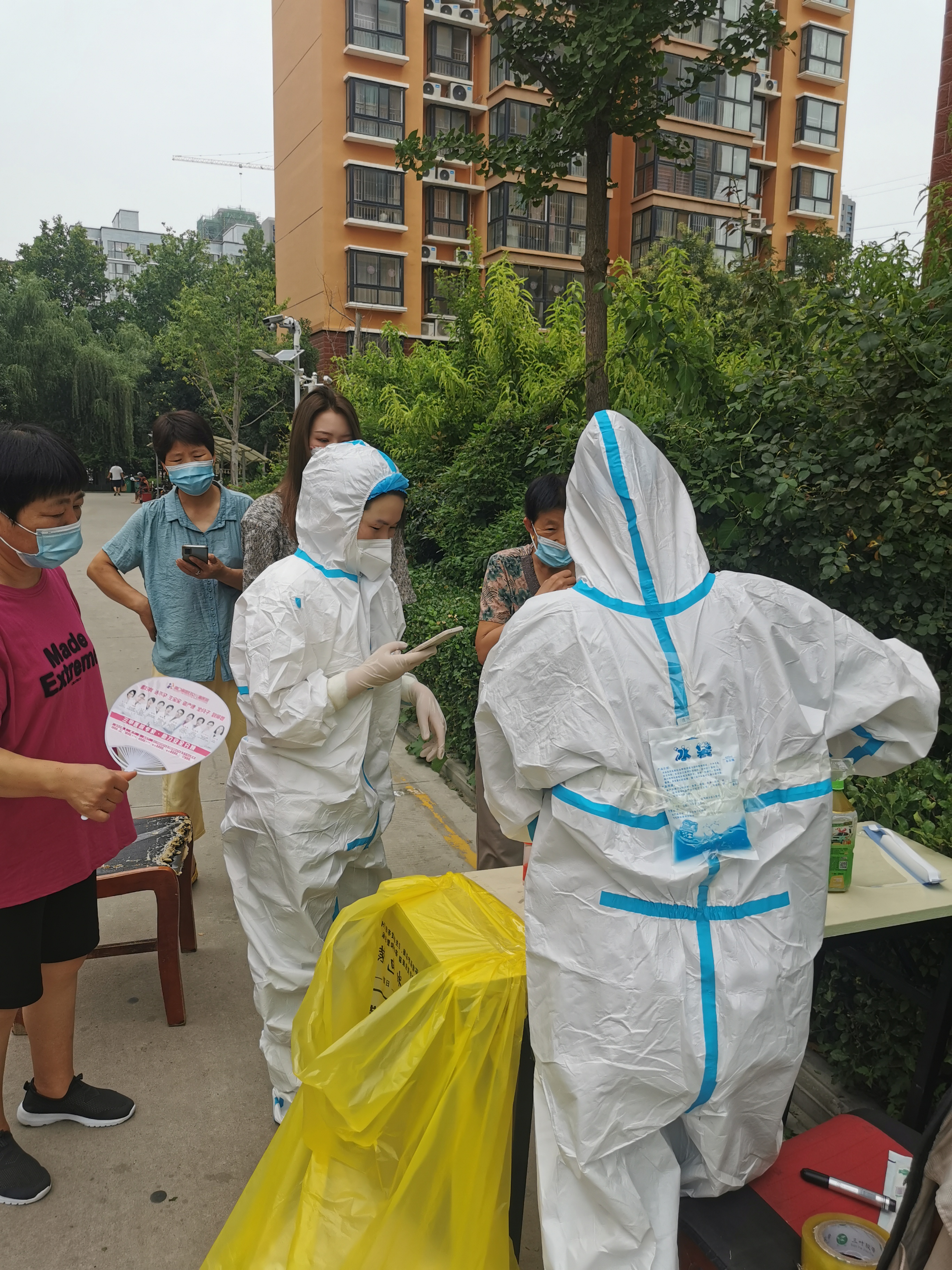 “这么热的天穿着‘大白’确实很闷,背上冰袋,能感受到丝丝凉意,有些清凉。”在富民社区进行核酸采集的周口阳光泌尿外科医院的一名护士说。