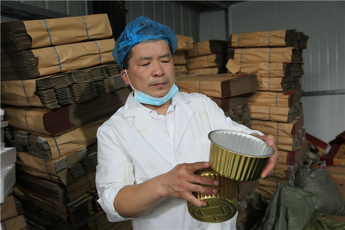 不想当老板的打工者,不是好员工。在上海当厨师期间,刘建新在苦练厨技的同时,无时无刻不在寻找在家乡创业的机会。2018年,刘建新被家乡返乡创业优惠政策所吸引,在乡党委和村党支部的支持下,他顺利地利用城关乡陈寨行政村已经建好的扶贫车间,在村里办起了食品加工厂。