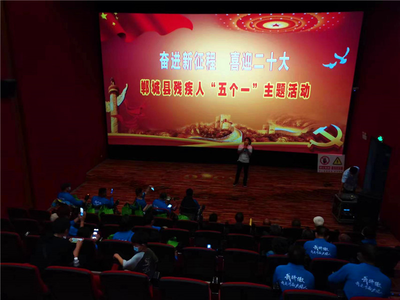 随后,在奥斯卡图书馆,残疾人不断翻阅着各类书籍,为全体参加活动的残疾人发放书籍《善待自己的一生》,让残疾人爱不释手,引导他们从书中汲取丰富的精神食粮,积极乐观地面对生活。在奥斯卡国际影城,残疾人朋友们集中观看了《长津湖》革命历史题材影片。