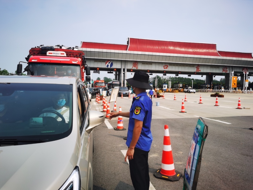 工作人员在高速路口进行疫情防控查验