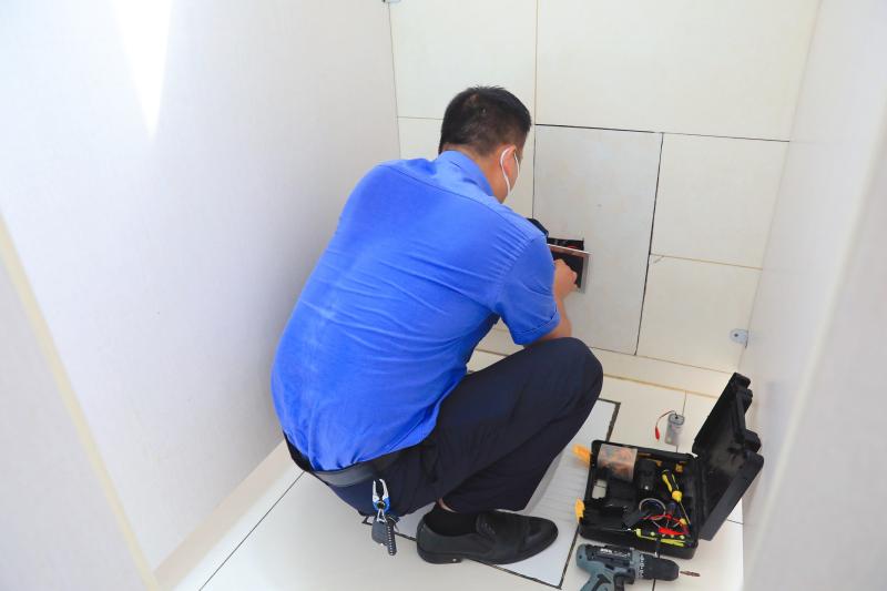 城管人员修理公厕马桶