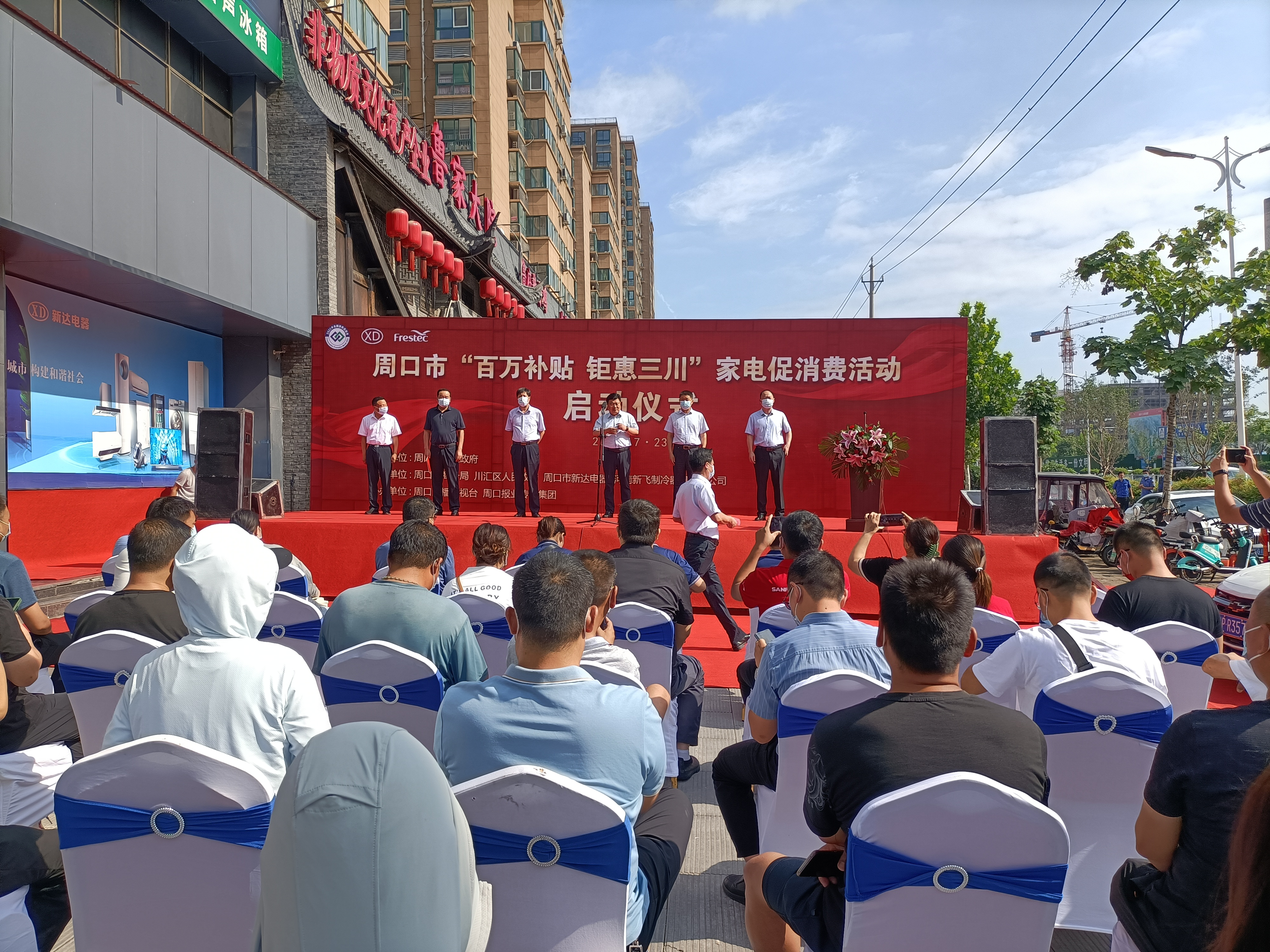 7月23日上午,周口市“百万补贴 钜惠三川”家电促消费活动启动,这是继7月8日启动首届啤酒节暨餐饮促消费活动后,市政府推出的又一惠民助企、促进消费、提振信心的务实举措。