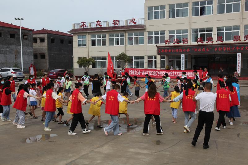 7月26日,商水县“快乐成长”乡村学校少年宫文艺志愿服务暑期特别行动在该县东城街道办事处苏坡行政村正式启动。据悉,该活动由商水县新时代文明实践中心、县教体局联合东城街道社工站等单位共同举办,旨在展示志愿者风采和农村昂扬向上的精神风貌,营造全社会共同帮助农村未成年人快乐成长的浓厚氛围。图为志愿者与孩子们一起做游戏。