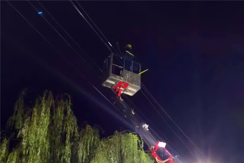 故障发生后,国网周口供电公司立即启动恶劣天气应急预案,并通过手机短信传达到每位职工。雨势稍微放缓后,各县市供电公司迅速派出应急抢修分队,出动抢修人员1389人,抢修车辆303辆。在雨中,大家分工协作,争分夺秒完成每一道工序,一部分抢修人员排查线路,消除安全隐患,防止次生灾害;一部分抢修人员快速投入到抢修工作中。