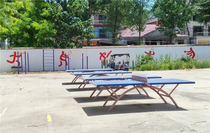 操场上鲜红的图案、文字为校园文化建设注入了新鲜活力。