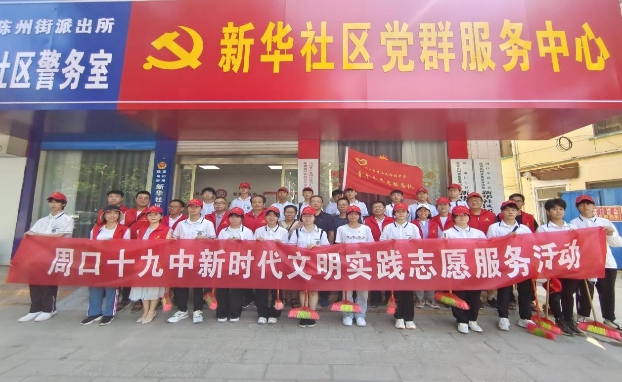 8月15日,周口市第十九初级中学开展主题团课、社区志愿服务活动,增强该校党员和团员的文明意识,助力文明城市创建。