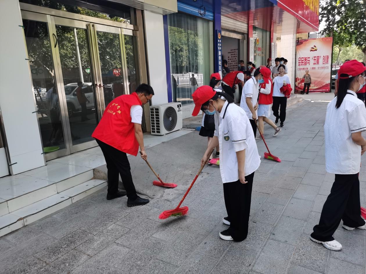 当日上午9点,该校校长王伟、校党支部书记唐玉生带领党员和团员代表走进新华社区党群服务中心和文明实践中心,开展志愿服务活动。尽管烈日炎炎,大家依然热情高涨,用自带的卫生工具打扫社区的室内外卫生,为周口创建文明城市尽一份力。在该校老师黄婷婷指挥下,大家为现场群众献上歌曲《我们是社会主义接班人》,获得了齐声赞扬。通过这次实践活动,该校广大党员和团员真切感受到了志愿服务的精神内核。