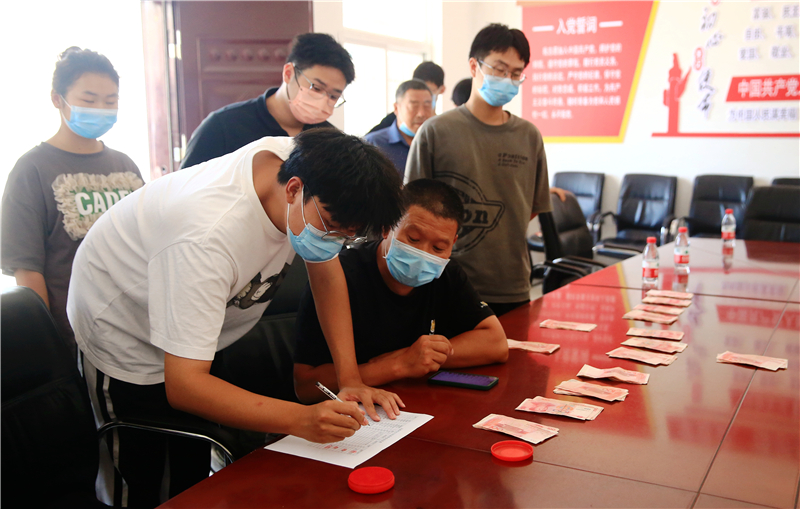 8月24日,扶沟县大李庄乡冯老村为14名大一新生颁发奖学金、行李箱和书籍。驻村帮扶单位河南农业大学为此次活动提供了1.1万元奖学金、14个行李箱和14套书籍。据了解,河南农业大学从2015年开始定点帮扶扶沟县冯老村,组建了驻村工作队,开展了富有成效的工作。图为一名大一新生在领取奖学金。②15
