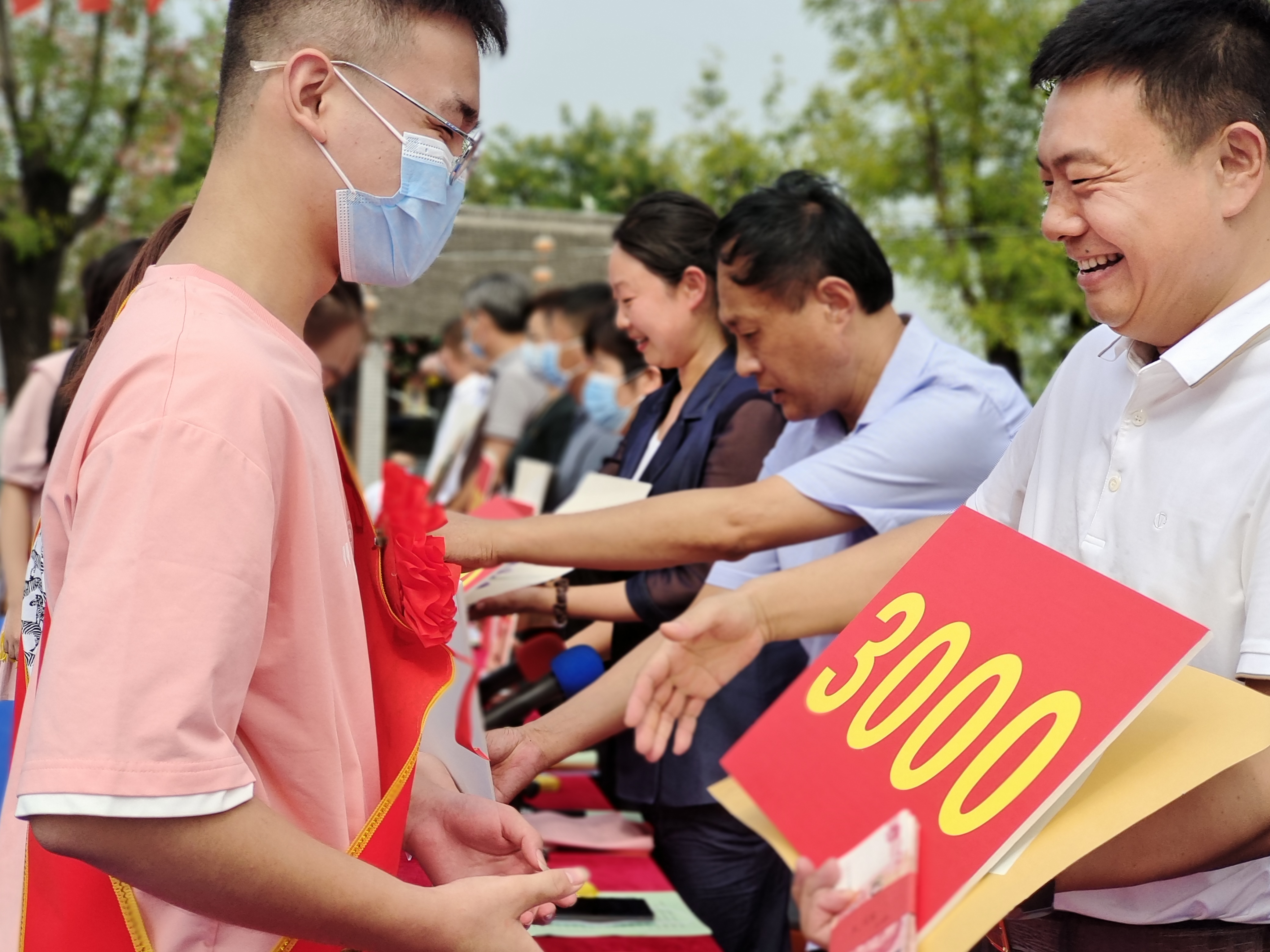 图片说明:8月20日上午,太康县老冢镇2022年“山果”助学行动暨庆祝第38个教师节表彰大会在老冢镇刘寨印象举行,对9个尊师重教先进行政村、8个教育工作先进单位、63名优秀教师、100名优秀中小学生、1名2022年考入北京大学的研究生,及17名被双一流高校录取的大一新生进行了表彰,共发放奖学奖教资金10.36万元,咏絮书画院向获奖学生赠送了书画作品。会前,与会人员共同观看了文艺汇演和《美丽乡村看老冢》纪录短片。