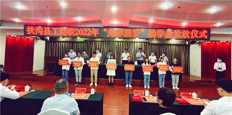 8月26日上午,扶沟县工商联举行2022年“光彩圆梦”助学金发放仪式。10家爱心企业捐赠善款58.6万元,资助181名家庭困难的大一新生。