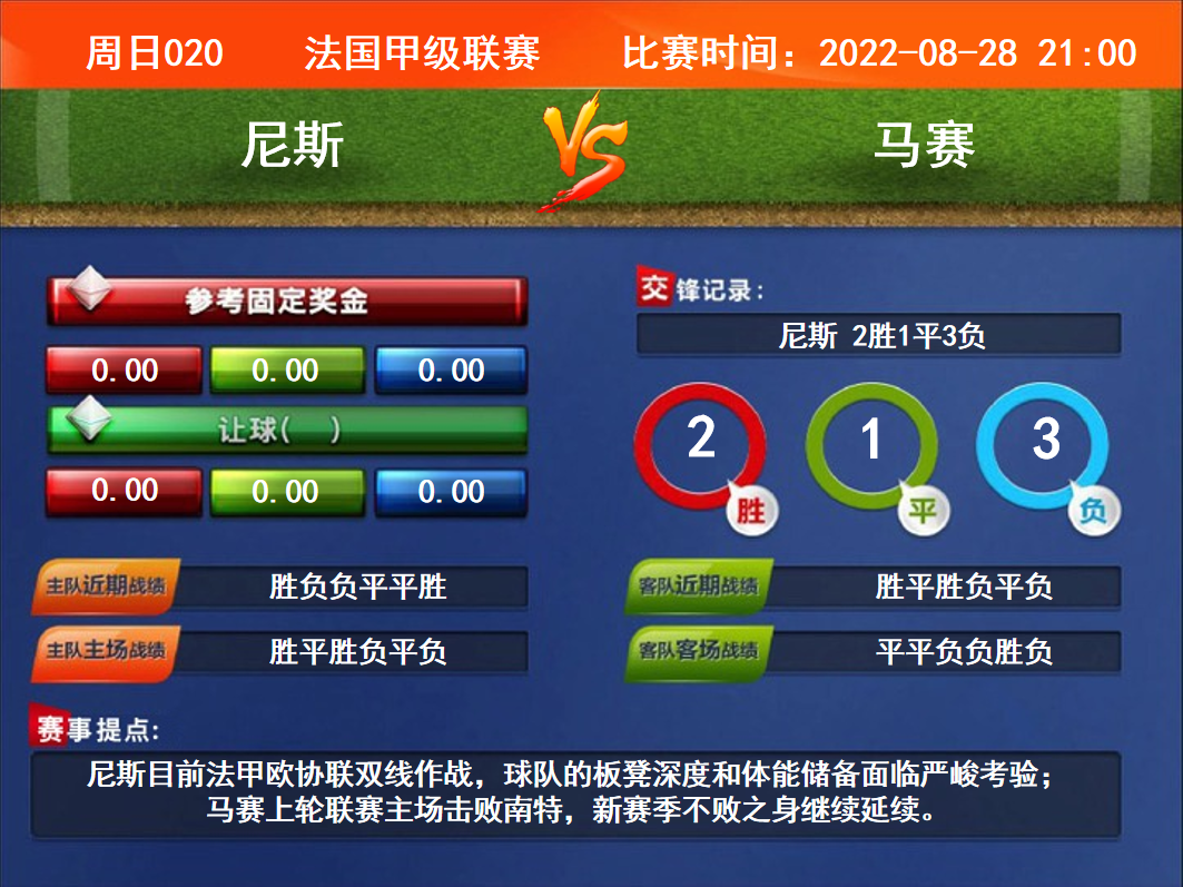 比赛时间:2022-08-28 21:00赛事提点:尼斯目前法甲欧协联双线作战,球队的板凳深度和体能储备面临严峻考验;马赛上轮联赛主场击败南特,新赛季不败之身继续延续。