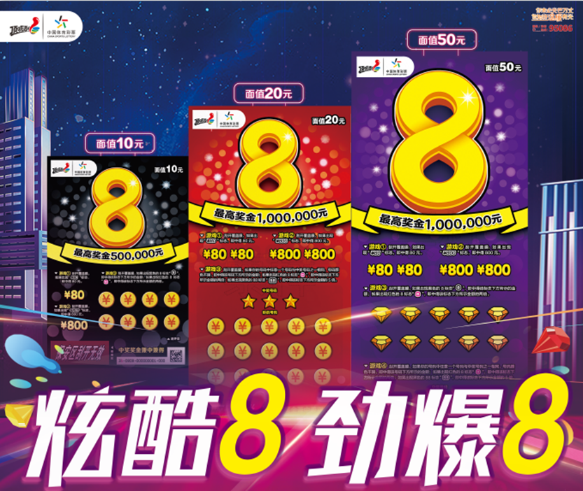 “8”系列主题即开票(面值:50元、20元、10元)。