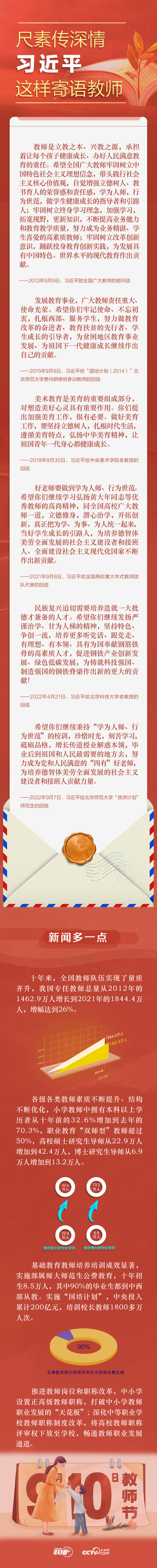 党的十八大以来,总书记多次以书信形式向教师群体表达嘱托与期望,情真意切,温暖人心。央视网《联播+》特梳理相关内容,与您一起感受总书记书信中的关切与深情。