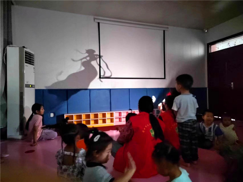 活动中,孩子们一起观看动画片,了解中秋节的起源,随后在老师和志愿者们的带领下玩光影游戏,表演嫦娥奔月、玉兔捣药等传说故事,美丽的嫦娥、可爱的玉兔在孩子们手中生动起来。紧接着,孩子们又画出自己心中的中秋,捏出形态各异的彩泥月饼,看到手中亲手制作的手工作品,孩子们脸上洋溢着喜悦的笑容。