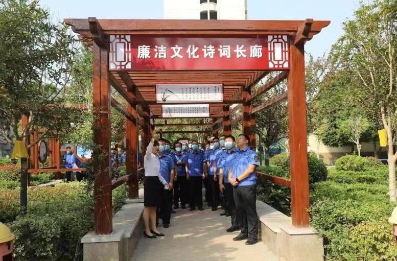 在建设大道与大庆路交叉口西南角的翰墨园内,党员干部参观了廉洁文化诗词长廊,并就长廊中涉及的严以律己、廉洁奉公、为民情怀、家风家训等典故及文化进行了详细了解,接受了廉政文化熏陶;在中原路和七一路交叉口廉洁文化主题游园内,全体党员干部重温了入党誓词,对“三不腐”一体推进深刻内涵、社会主义核心价值观、伟大建党精神、古圣先贤廉政思想、革命先辈廉洁风范等内容进行了认真学习,领略了廉政思想,感受了廉洁基因。
