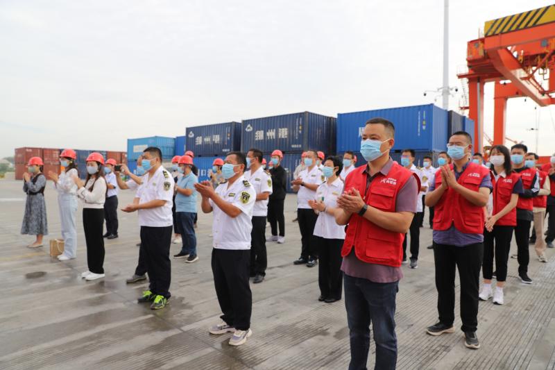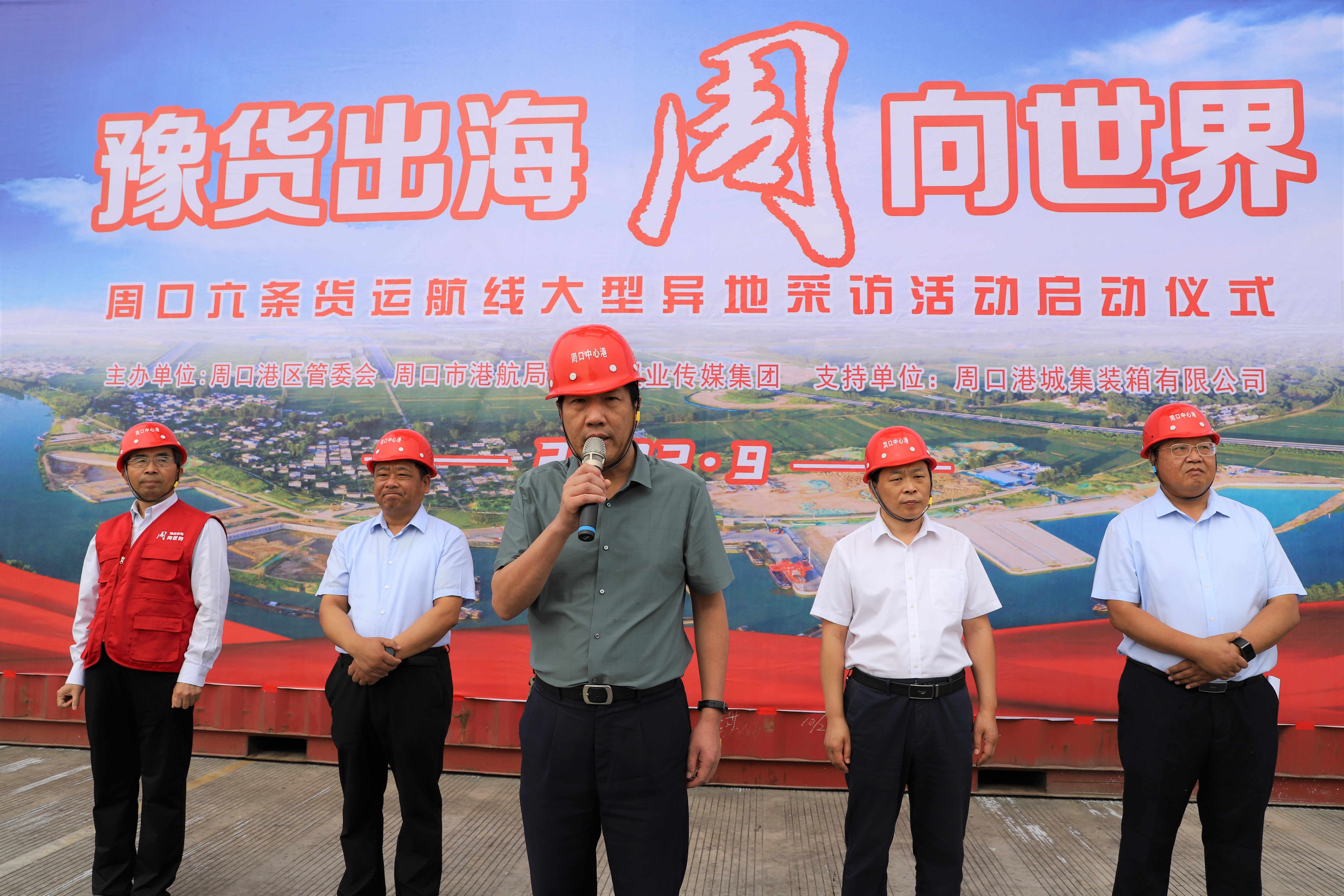 9月21日上午,由周口港区管委会、周口市港航局、周口报业传媒集团、周口港城集装箱有限公司联合组织开展的豫货出海 “周”向世界——周口六条货运集装箱航线大型异地采访活动在周口中心港码头正式启动。