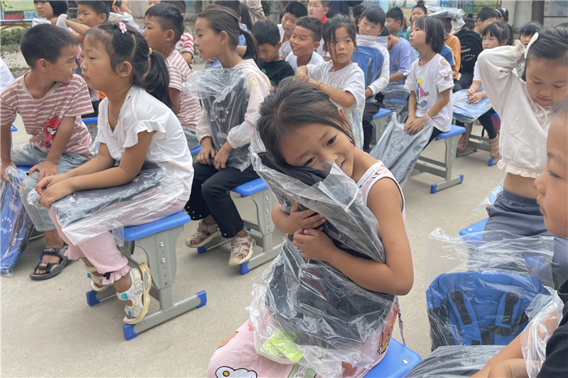 9月20日上午,西华县后套希望小学一个小女孩收到周口市眼科医院募捐的爱心书包后,深情地抱在怀里。长期以来,团市委希望工程各类项目受到社会各界的广泛关注与支持,越来越多的困难学生和留守儿童在爱心人士的帮助下改变了生活现状,实现了人生梦想。记者 刘伟 摄①9